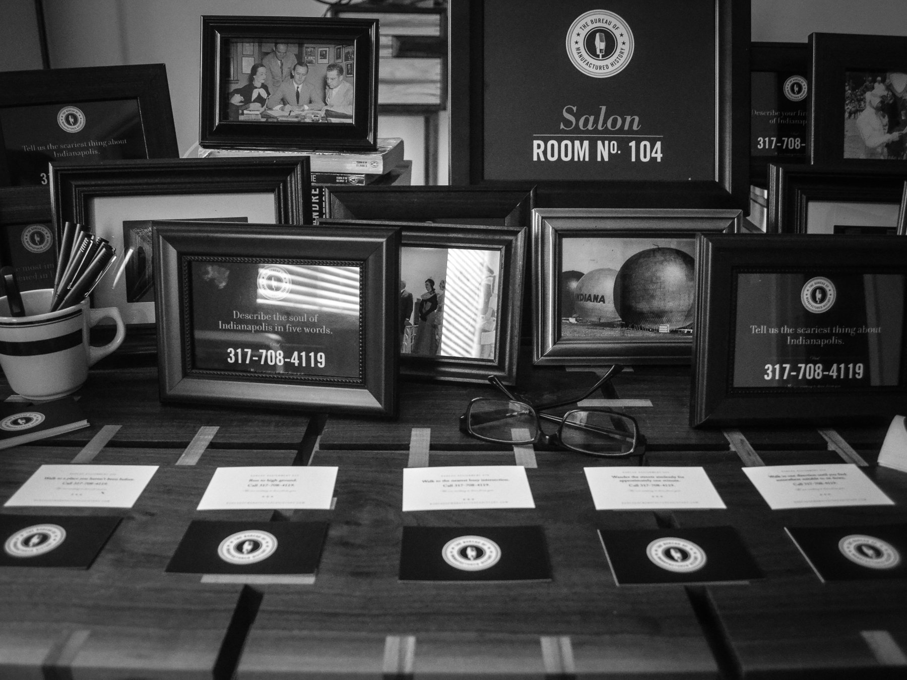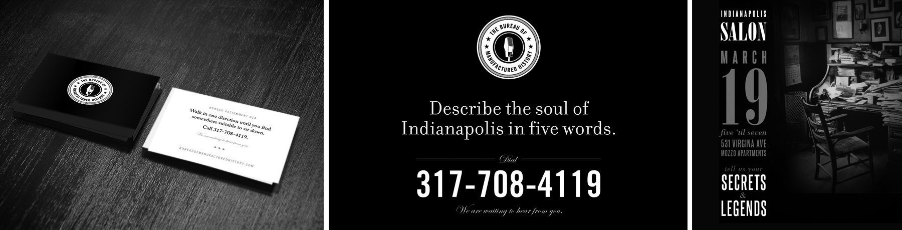 The Bureau of Manufactured History was a collaboration between Oliver Blank and myself that explores the personalities of cities. I spent the month of March in Indianapolis writing stories based on urban legends, historical rumors, and general chatter recorded on the Bureau’s open telephone line. Mr. Blank transformed elements of these stories into a 45-minute composition and a performance-based installation using a desk, audio speaker, the soul of Indianapolis, and a chair. The Former Desk of the First Office of the Bureau of Manufactured History was unveiled at a ceremony on the third of May and continues to appear in unexpected locations throughout the city. A book called The Manufactured History of Indianapolis was published in 2013.
