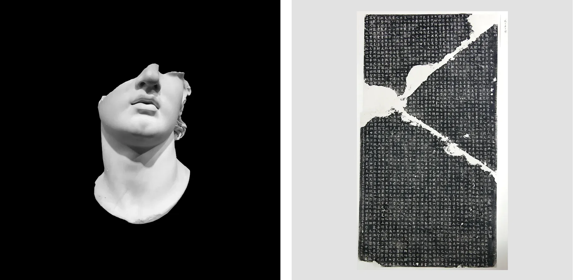 The rupture is what makes anything interesting, much like two of my favorite pieces at the Metropolitan Museum of Art: the fragmented head of a colossal boy and the inked imprint of a shattered stele.
